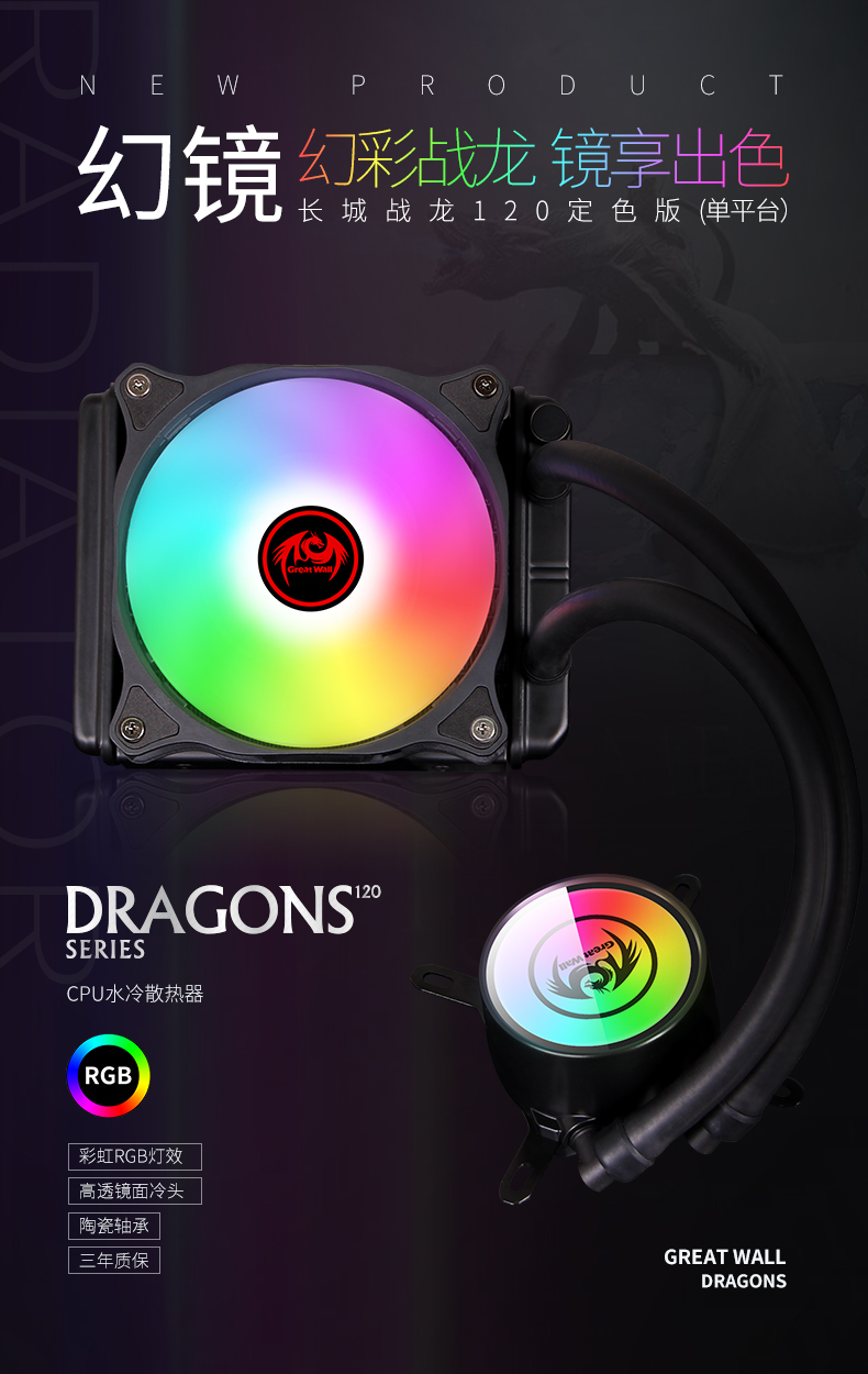 长城电源,散热器,水冷,水冷散热器,120水冷,RGB散热器