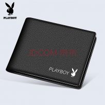 花花公子playboy男士钱包短款头层牛皮票夹休闲卡包钱夹多卡位横款钱夹 黑色【头层牛皮】, 单品